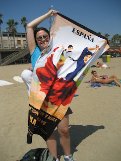 i am teaching her how to fit in like a real spanish girl. step one, non-touristy towel purchase.