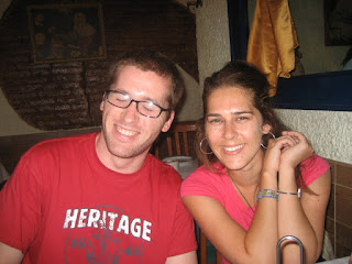 when i got to madrid, i cooled off in a bar with some of ed's friends -- amy, tim and bruna. i think i was laughing so hard because bruna would not stop licking my face. except when the picture was taken.