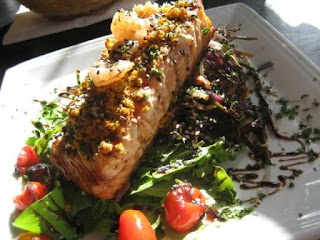 have lunch/dinner -- here, one of the best salmon and stir-fry veggies i've ever had at mala cara in recoleta